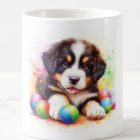 Popestrite svoj dan: Skodelica z igrivim psičkom-Bernski planšar in barvitimi kroglicami za nasmeh na obrazu.